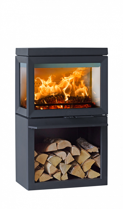 Con una visión panorámica de las llamas gracias a sus tres cristales, la Jøtul F 520 ofrece la experiencia de un punto de reunión en torno al fuego en su salón. La visión de las llamas se puede disfrutar desde cualquiera de los tres costados de la estufa. Sus placas interiores están esmaltadas en blanco para una cámara de combustión más luminosa, y su sistema de regulación de aire está pensado para que sin darse cuenta siempre se regule de manera óptima. La base de la estufa se puede utilizar como práctico almacén de leña.