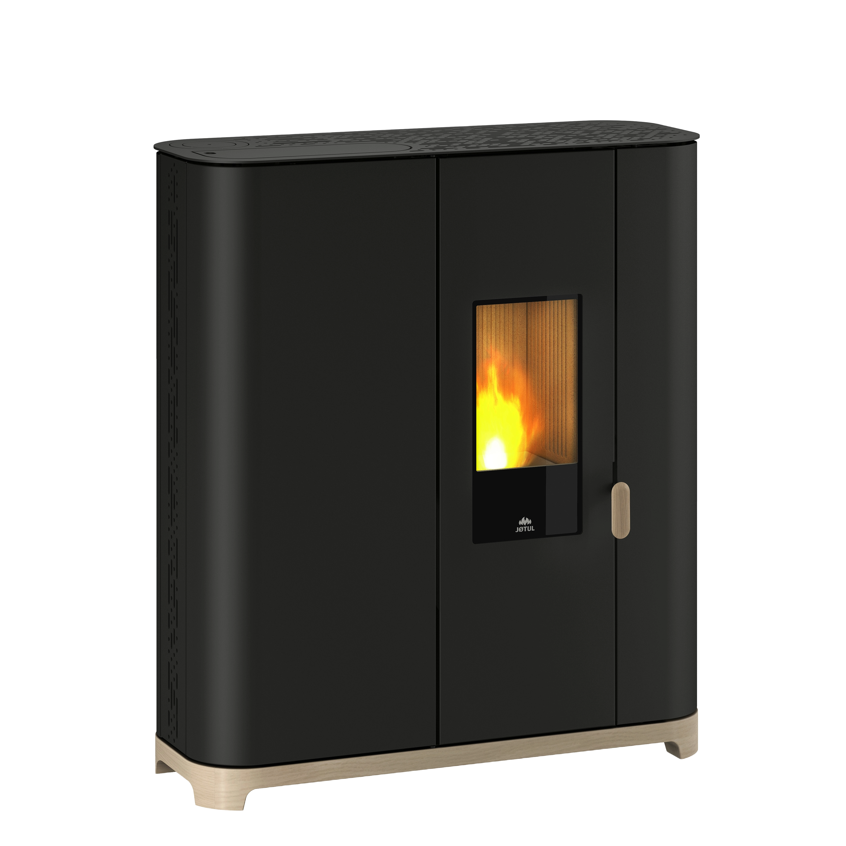 Para los amantes de las líneas redondeadas y el diseño escandinavo, elija la JØTUL PF 912 S. Las rejillas de ventilación y el acabado en madera le confieren un aspecto elegante y un estilo único. Elija entre 2 acabados según su decoración: acero negro mate o acero corten. Compacto, puede colocarse fácilmente en un pasillo o un vestíbulo. Su intercambiador de calor de hierro fundido permite un funcionamiento por convección natural que le garantiza un confort acústico máximo. Su brasero giratorio autolimpiable reduce el consumo de pellets y le ofrece facilidad de mantenimiento. Su distribución de aire caliente canalizado le permite calentar una habitación suplementaria de su vivienda, controlada con ventilación mecánica.